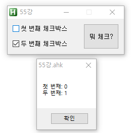 Gui, Add, Checkbox, x10 y40 w130 h20 vSecond, 두 번째 체크박스