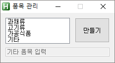 - 품목.txt의 내용은 "만들기"버튼을 눌러도 항상 한 줄만 써져있도록 할 것. 즉, FileAppend를 이용하여 계속 품목 추가를 하면 이미 있는 내용 뒤에 새 내용이 추가되는데, 이러한 현상을 해결할 것