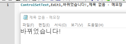 ControlSetText, Edit1, 바뀌었습니다!, 제목 없음 - 메모장