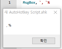 오토핫키에서 매개변수 구분은 콤마(,), 변수 사용은 퍼센트(%)를 사용한다고 말씀드렸습니다.