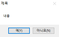 | 3 | 예 / 아니오 / 취소 버튼 표시 | 64 | 정보(i) 아이콘 표시 |