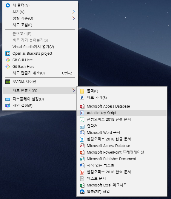 우클릭 > 새로 만들기 > AutoHotkey Script