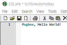 오토핫키 스크립트 작성이 가능하도록 아래와 같은 SciTE 창이 나타납니다.