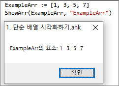 일차원 단순 배열을 MsgBox로 시각화하는 함수를 만들어봅시다.