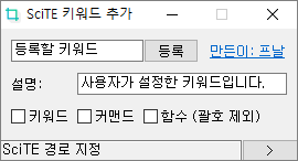 그래서 만들었습니다. SciTE 지원 키워드를 추가해주는 프로그램입니다.