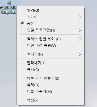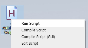 연결 프로그램이 SciTE4AutoHotkey가 아니라 AutoHotkey로 재설정 되었다면, 위와 같이 스크립트 메뉴가 나타납니다.