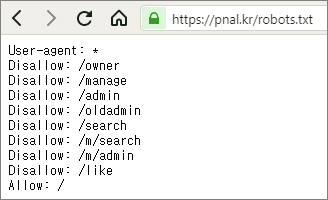 위와 같이, 도메인 주소 뒤에 /robots.txt를 붙이면 네이버가 말하는 크롤링 규약을 볼 수 있습니다.