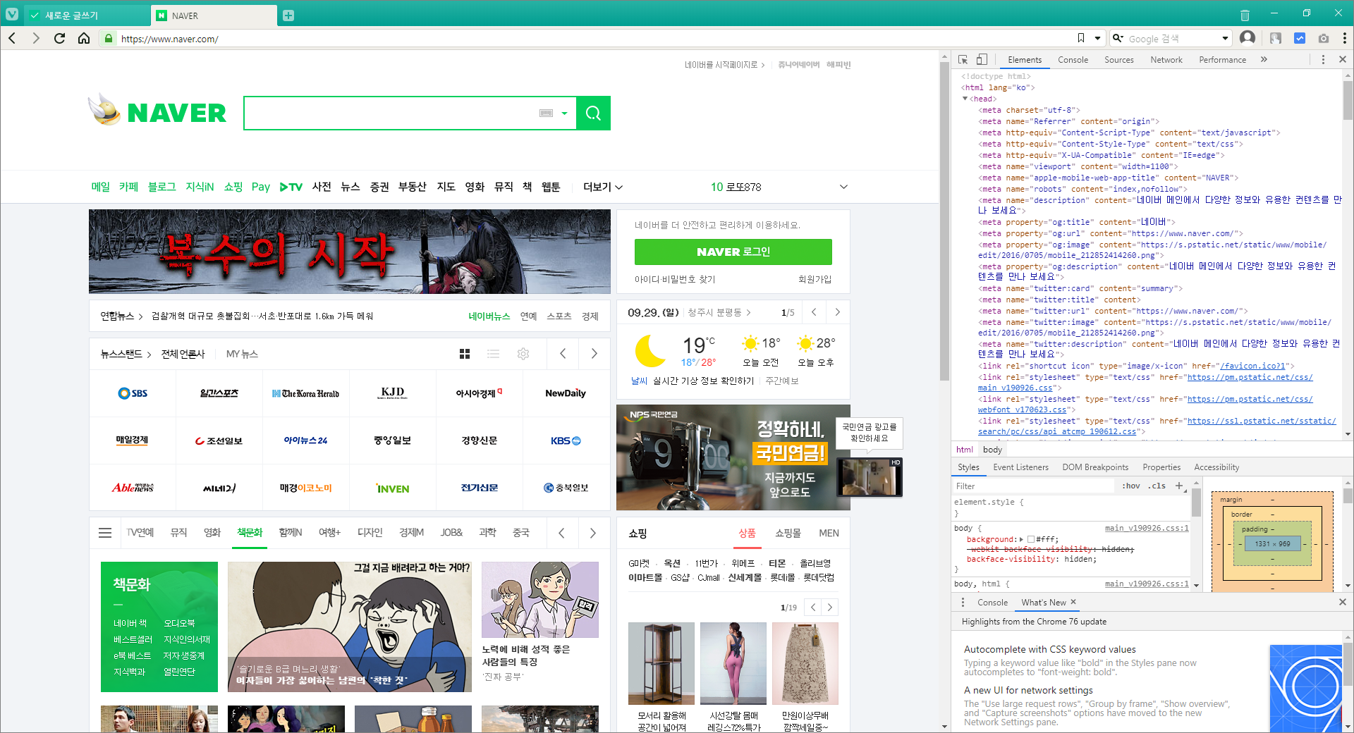 우리는 간단한 방법을 사용하여 현재 여러분이 있는 페이지의 HTML을 잠깐 들여다 볼 수 있습니다.